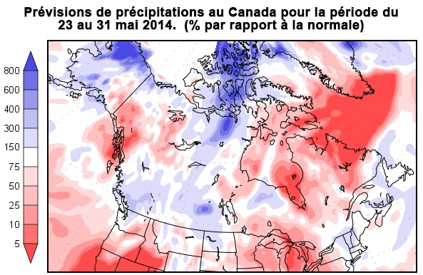 Côté météo, dans le Midwest, il semble que les précipitations plus importantes qui étaient attendues à partir du début de la semaine prochaine seraient maintenant plus faibles que prévu. Certains commencent déjà même à croire que ces conditions plus sèches pourraient créer certaines incertitudes pour les cultures. Pour le Québec, les dernières prévisions pour la période du 23 au 31 mai se veulent dans la moyenne du côté des précipitations, et légèrement sous les normales du côté des températures.