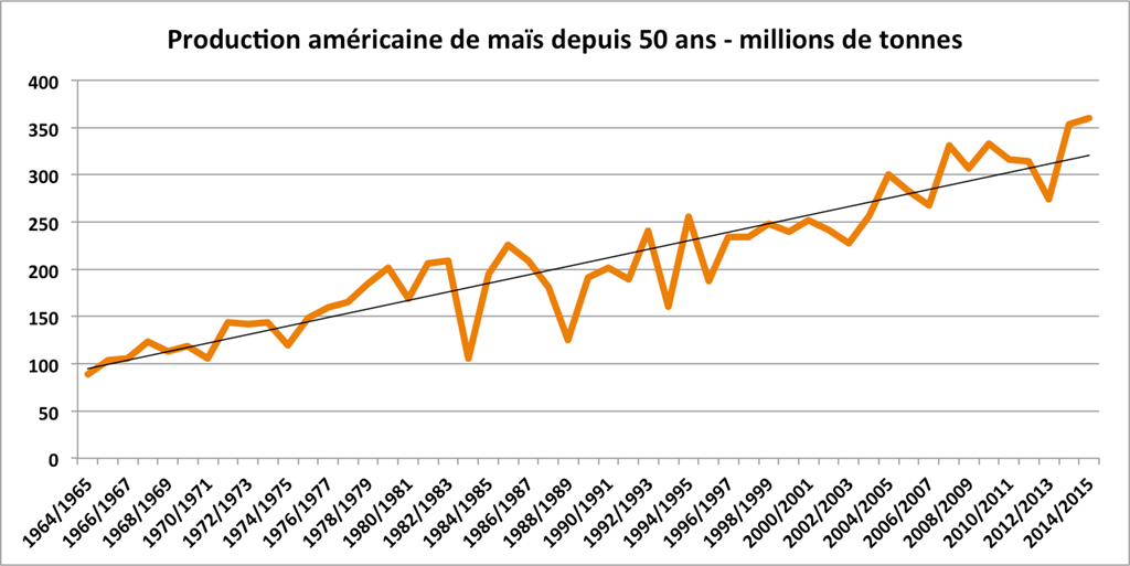 Du côté du maïs, le contexte est moins lourd, mais est également négatif. Dans son rapport sur les superficies ensemencées, le USDA confirme un léger recul à 91,641 millions d’acres comparativement à son 1er estimé de mars dernier. Ceci porterait les superficies récoltées à 83,84 millions d’acres. Si les conditions météo restent profitables pour les cultures, ce que suggères toujours les dernières prévisions, un rendement record de 169-170 boisseaux/acre n’est certainement pas impossible, ce qui porterait alors la récolte américaine de cet automne elle-même à un nouveau record de 14,17-14,25 milliards de boisseaux (360 -362 millions de tonnes).