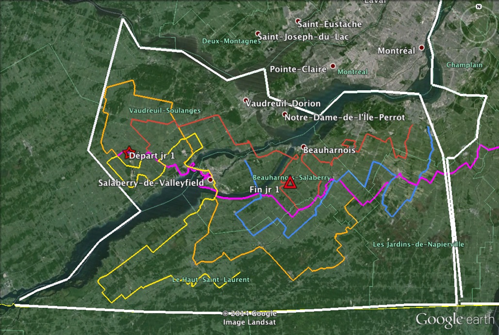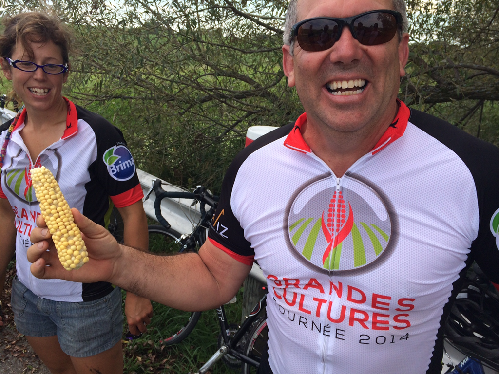 La première journée de la Tournée des Grandes Cultures a débuté dans la portion ouest de la Montérégie. Partant de St-Télesphore chez M. Gilbert Marleau, quatre équipes d’échantillonneurs à voiture, et une équipe à vélo, ce sont ainsi mis à l’œuvre à partir de 8h30 le matin recueillant ainsi plus de 45 échantillons dans quatre régions administratives différentes : Vaudreuil-Soulanges, Beauharnois-Sallaberry, Haut-St-Laurent et Roussillon.