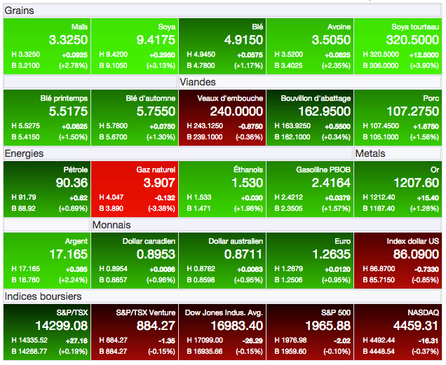 Dans les faits, le contexte reste cependant toujours difficile et ambigu pour le marché des grains. Jusqu’ici les rendements observés aux États-Unis sont dans plusieurs cas plus élevés que prévu. Ceci donne d’ailleurs à penser aux analystes que le USDA révisera à la hausse les récoltes déjà records anticipées cet automne dans son prochain rapport mensuel d’offre et demande qui sera publié ce vendredi.