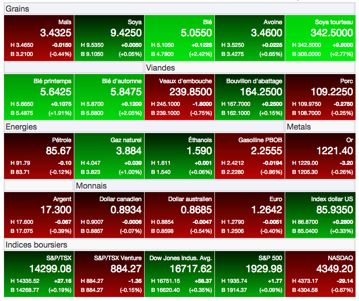 Au moment d’écrire ces lignes, les marchés continuaient de s’ajuster aux nouveaux chiffres du USDA qui, dans l’ensemble se veulent neutres à positifs considérant qu’ils sont sous les prévisions des analystes. Rappelons cependant qu’ils révèlent malgré tout l’importance de l’offre de grains à prévoir pour les prochains mois.