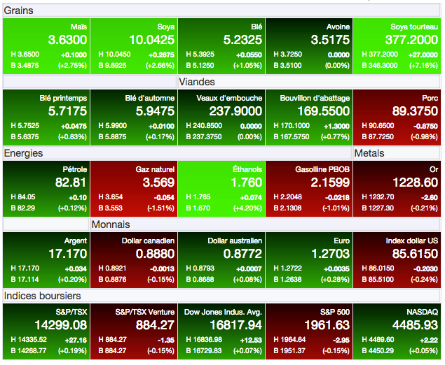 Pour un survol complet des marchés et perspectives des prix des grains et viandes, la lettre hebdomadaire des marchés de cette semaine est maintenant disponible pour les abonnés: Lire d'édition de cette semaine