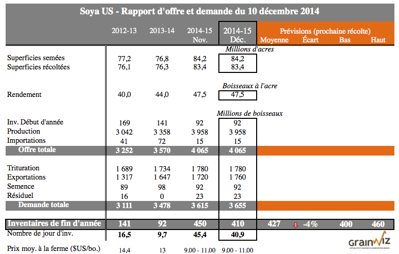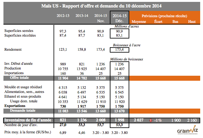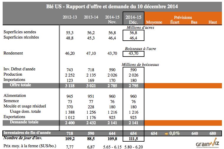 Pour accéder au rapport complet du USDA : WASDE DEC 14