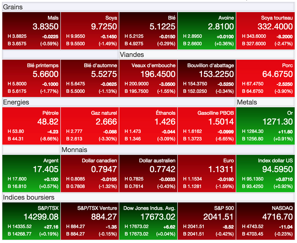 Hier, comme l’ont souligné plusieurs analystes, les prix des grains ont surtout été propulser par un engouement général des marchés financiers pour les commodités avec le rebond du prix du pétrole, et la faiblesse du dollar américain. Plus spécifiquement, les prix des grains étaient aussi nettement « survendus » et murs pour une correction après leur chute de janvier. Dans ce même ordre d’idée, aujourd’hui, le recul du prix du pétrole et la hausse du dollar américain auront incité à la prudence et forcé à la baisse les prix des grains.