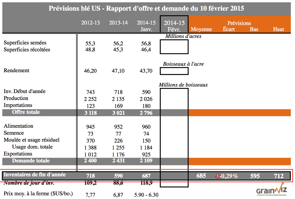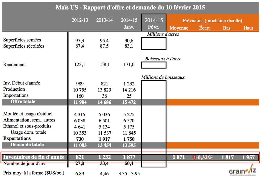 Début de semaine intéressant, mais défensif pour le marché des grains. Demain, le USDA présentera son rapport mensuel d’offre et demande de grains aux États-Unis et dans le monde. Généralement la publication de ce rapport en février fait peu de vagues. Mais, les marchés resteront malgré tout à l’affut de surprises, spécialement du côté des nouvelles prévisions de consommation :