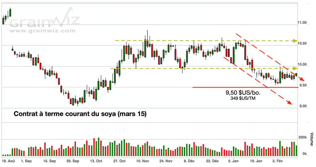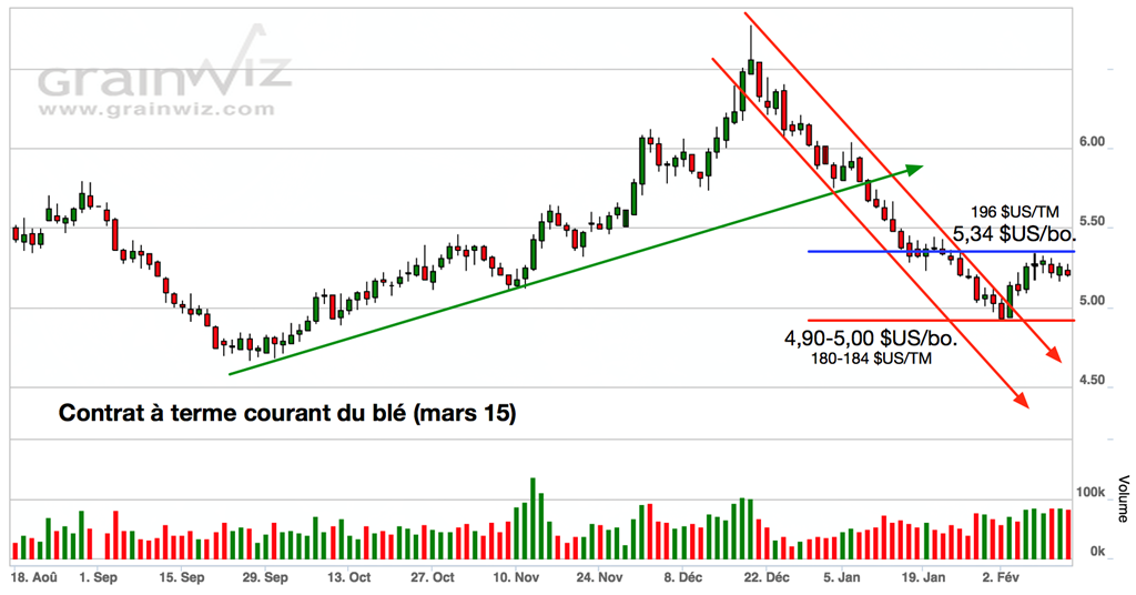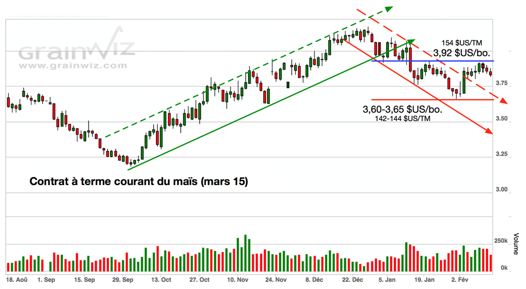 Techniquement, le comportement général des prix des grains reflète bien le manque de nouvelles stimulantes, la plupart ayant mis un terme à leur tendance baissière de janvier, sans pour autant amorcer un retour à la hausse plus soutenu pour l’instant.