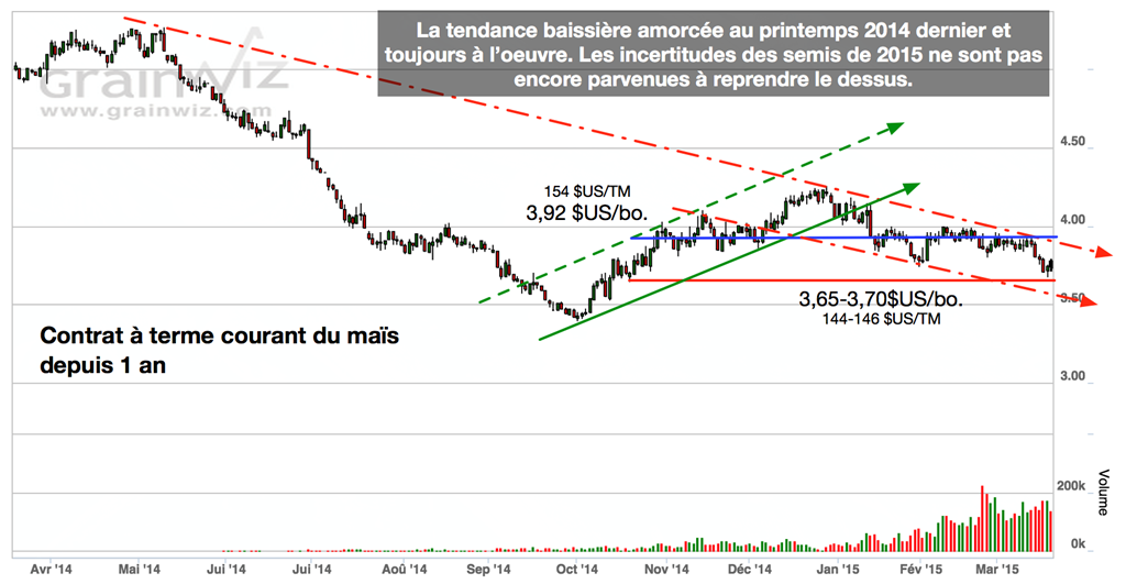Semaine qui n’aura pas été de tout repos dans le marché des grains. À Chicago, le marché du soya a atteint un nouveau creux inégalé depuis l’automne dernier, le maïs se transige pour une deuxième fois depuis le début de 2015 à son plus bas, seul le blé garde le cap, bien qu’il soit confronté maintenant à une bonne résistance à l’approche de 5,20 $US/boisseau.