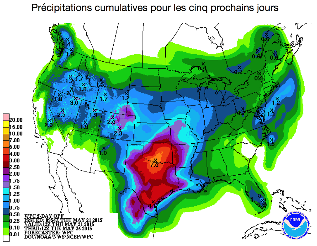 D’ici la fin de la semaine, les dernières prévisions météo proposent toujours des conditions qui devraient permettre aux producteurs américains de continuer leurs ensemencements à un bon rythme. Ceci devrait pratiquement clore ceux de maïs.