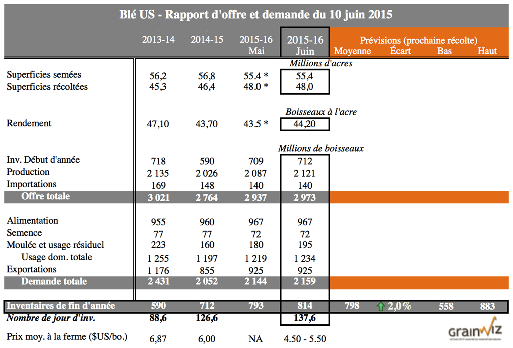 Pour accéder au rapport complet du USDA (en anglais): WASDE Juin 2015