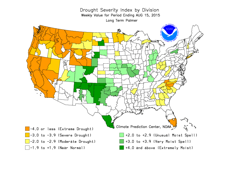 Bien que ces conditions persistent maintenant depuis une semaine, voire même deux, elles sont cependant jugées encore adéquates pour les cultures avec des précipitations régulières dans la plupart des régions, et des sols qui conservent toujours des quantités acceptables d’eau. Comme l’illustre la carte ci-haut, seul la portion des Plaines américaines est anormalement sèches, mais des averses sont attendues dans les prochains jours pour calmer le jeu.