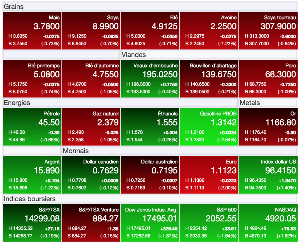 Très peu de nouveaux dans le marché des grains dans les derniers jours. Il y a pour ainsi biendire très peu matière à faire bondir les prix, tout autant qu’à les forcer davantage à la baisse.
