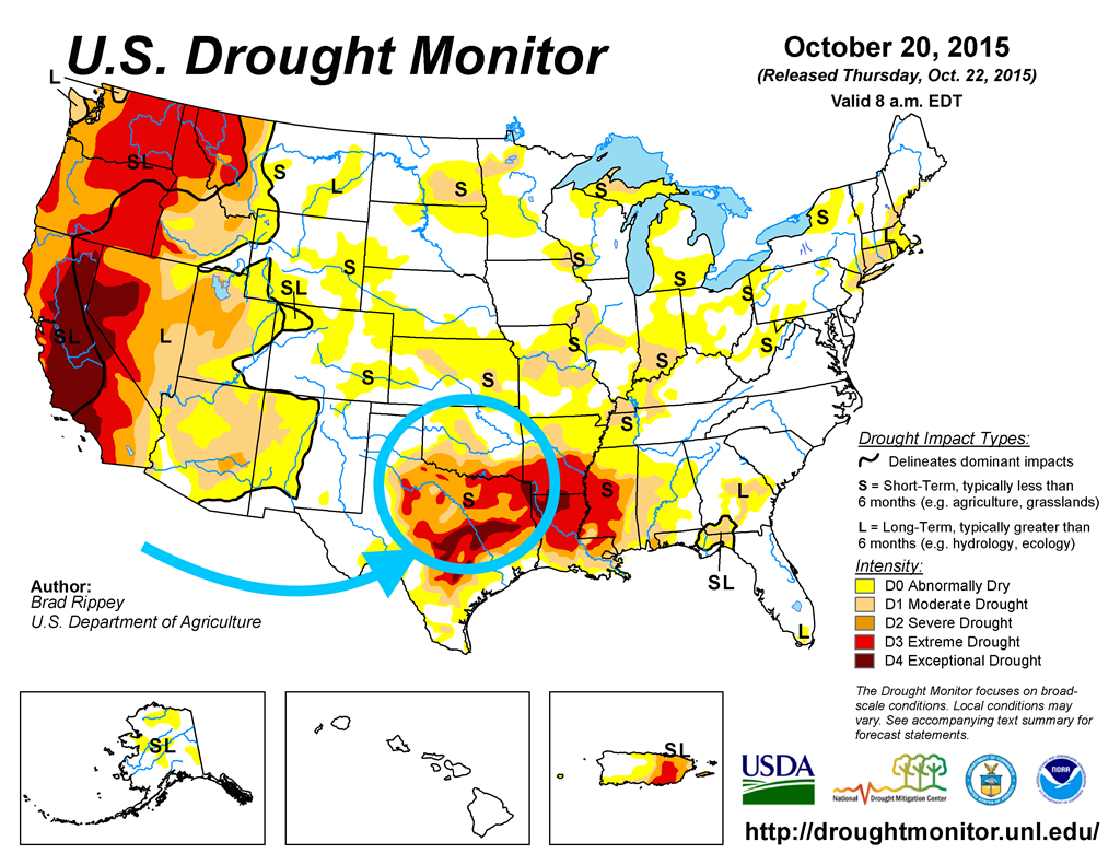 - Dans le sud des États-Unis (Plaines américaines), les conditions de début de saison ne sont pas idéales, ce que reflète d’ailleurs bien le 1er rapport ci-haut mentionné sur l’état des cultures de blé d’hiver à 47% dans la catégorie « bon à excellent ».