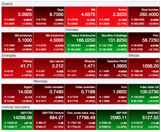 Il semble cependant que les marchés n’aient pas vu dans ces ventes matière à s’enthousiasmer pour autant, le prix du maïs (CàT Décembre) ayant terminé la journée en baisse de -0,0675 à 3,5925 $US/boisseau. Pour la semaine, il a ainsi perdu -0,0325 $US/boisseau. C’est un recul qui n’est pas particulièrement important, mais réitère la forte résistance qui a pris place à l’approche de 3,68 $US/boisseau, et qui ouvre à nouveau la porte à une revisite du dernier creux à 3,56 $US/boisseau.