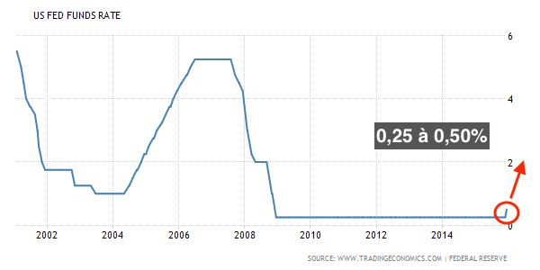 Sans aucun doute, la grande nouvelle d’aujourd’hui qui, il faut le dire, n’est pas outre mesure une surprise, aura été la hausse du taux d’intérêt directeur aux États-Unis. Ce dernier se voit ainsi rehaussé pour la 1re fois depuis 2008 dans une fourchette de 0,25 à 0,50%.