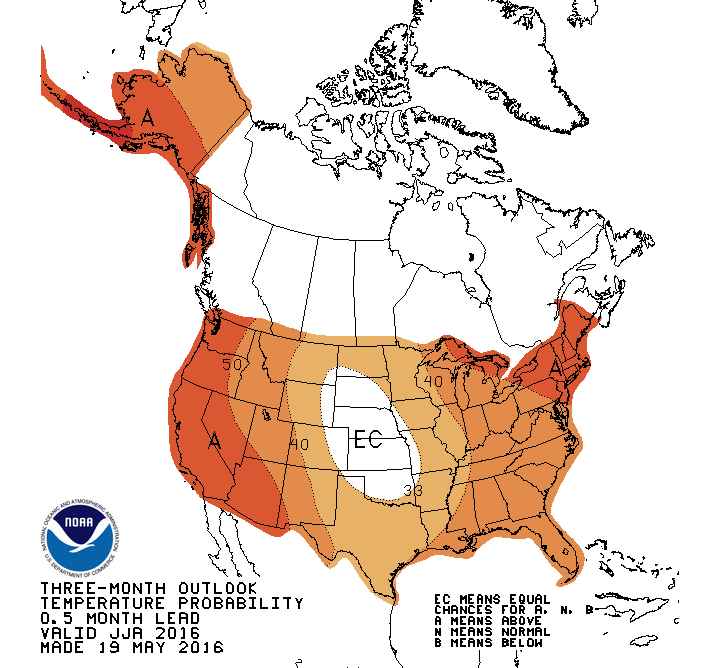 Prévisions de températures aux États-Unis de juin à août 2016