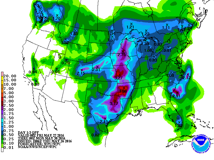 Pour le reste du Midwest, pour la fin de semaine, des précipitations sont attendues dans de samedi à dimanche. Par contre, les prévisions proposent des conditions normales pour le reste de la semaine.
