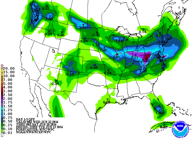 La météo se veut un peu plus clémente pour les cultures américaines avec des précipitations de 0,5 à 1,0 pouce dans les prochains jours dans plusieurs régions du Midwest.