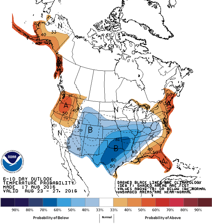 Les dernières prévisions météo proposent de leur côté pour le Midwest et les Plaines Américaines un retour à des températures qui passeront d’anormalement chaudes à anormalement froides pour terminer le mois d’août, avec des précipitations plus importantes dans le sud-ouest du Midwest, et le centre/sud des Plaines américaines. Pour l’essentiel, plus aucune menace non plus de sècheresse, les États de l’Ohio et de l’Indiana ayant profité de très bonnes précipitations dans les derniers jours. Il reste à évaluer maintenant l’étendu des dommages occasionnés par la sècheresse qui à sévit jusqu’à dernièrement dans ces États.