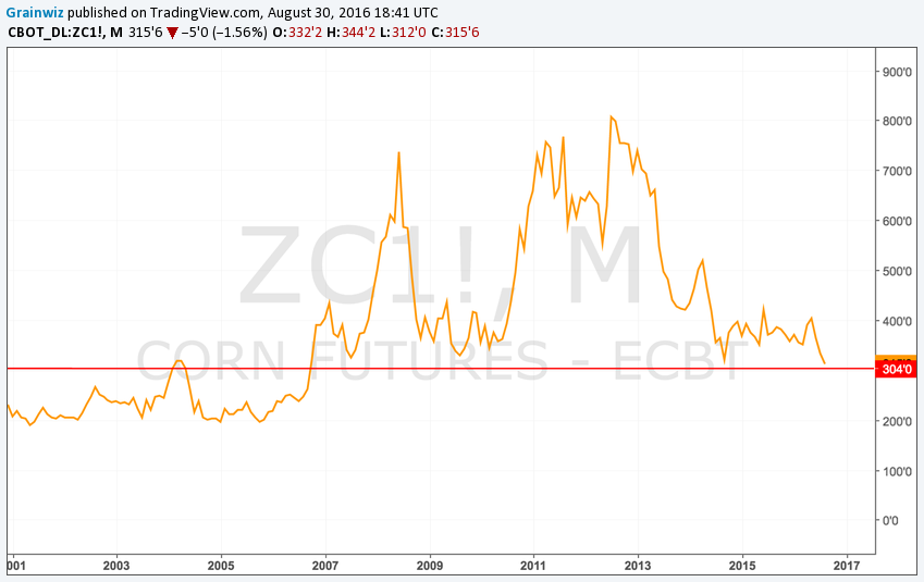 Maïs – En approche maintenant du seuil psychologique important de 3,00 $US/boisseau avec une fermeture aujourd’hui sur l’échéance immédiate (sept. 16) à 3,04 $US/boisseau. La dernière fois qu’il s’était transigé à ce niveau remonte à 2006. Et, comme le révèle le comportement récent du blé à Chicago qui a finalement lâché le morceau à 4,00 $US/boisseau pour rapidement s’enfoncer dans les derniers jours, rien ne permet d’exclure maintenant un passage sous 3,00 $US/boisseau avec par la suite un support à surveiller à 2,90 $US/boisseau.