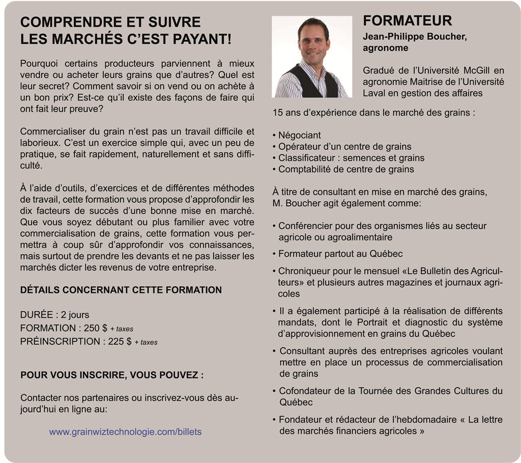 Formations mise en marché des grains