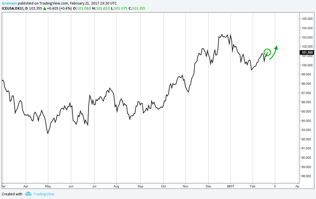 La valeur du dollar américain est de retour à la hausse de manière plus marquée après certaines hésitations la semaine dernière. Aux yeux des marchés, ceci ne se veut pas favorable pour les prix des grains américains qui misent toujours sur un bon rythme des ventes américaines à l’exportation pour écouler les stocks très importants des dernières récoltes.