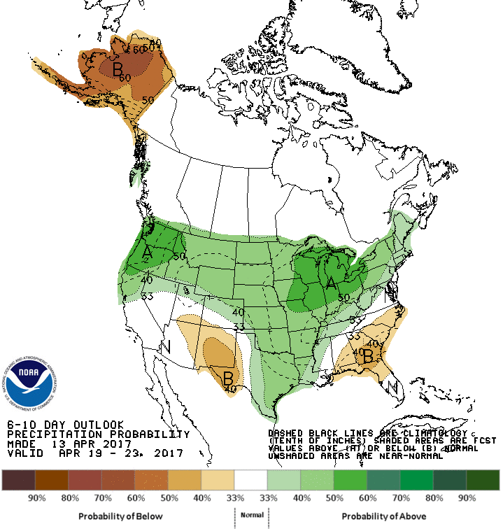 Dans tous les cas, le regain intéressant et prometteur des prix des grains des derniers jours tient pour beaucoup de la météo américaine présentement. Il faudra donc être très attentifs aux prévisions météo pour amorcer la prochaine semaine après trois jours de congé avec la fête de Pâques. Pour le moment, ce vendredi, les dernières prévisions météo proposent encore de bonnes précipitations pour les deux prochaines semaines.