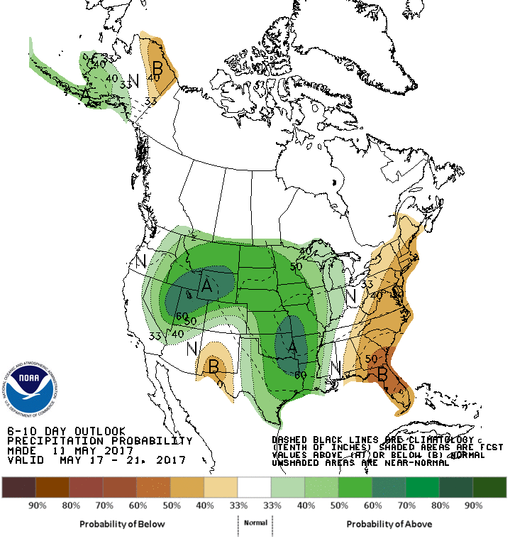 Les producteurs américains devront cependant se dépêcher dans les prochains jours, car les prévisions 6-10 puis 8-14 jours suggèrent un retour à des précipitations au-dessus des normales saisonnières à partir de la mi-mai. Si c’est le cas, il sera alors intéressant de surveiller la réaction des marchés qui restent toujours très méfiants pour l’instant à s’investir en vue d’un rallye printanier plus vigoureux.