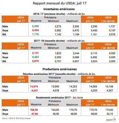 Pour accéder au rapport mensuel du USDA lors de sa publication à midi (en anglais): WASDE Juillet 17