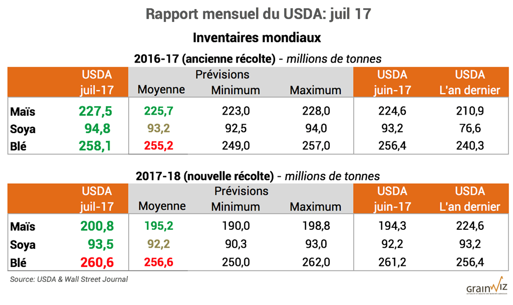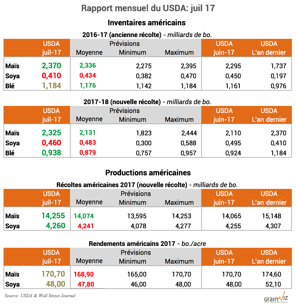 Pour accéder au rapport complet du USDA (en anglais): WASDE Juillet 17