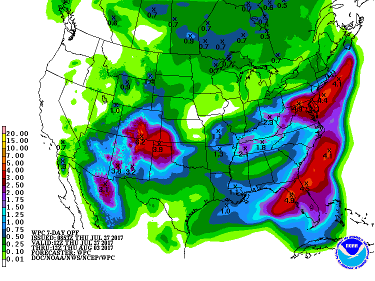 Dans le cas du maïs, rappelons que déjà 67% des cultures de maïs aux États-Unis avaient atteint le stade de la pollinisation dimanche dernier. Ceci suggère que plusieurs régions ont vu les cultures de maïs être affectées par les conditions trop chaudes et sèches des dernières semaines, rendant inévitables des pertes de rendement.