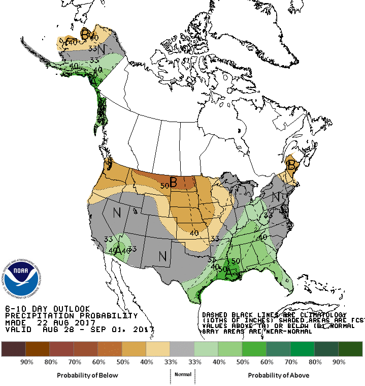Pour les 6-10 puis 8-14 prochains jours, les dernières prévisions proposent un retour à des conditions anormalement sèches pour une bonne proportion du Midwest et des Plaines américaines. Certaines régions pourraient s’assécher assez pour capter du coin de l’œil l’attention des marchés. Par contre, on note également que les températures seront à nouveau sous les normales saisonnières, limitant par la même occasion le stress de conditions trop sèches.