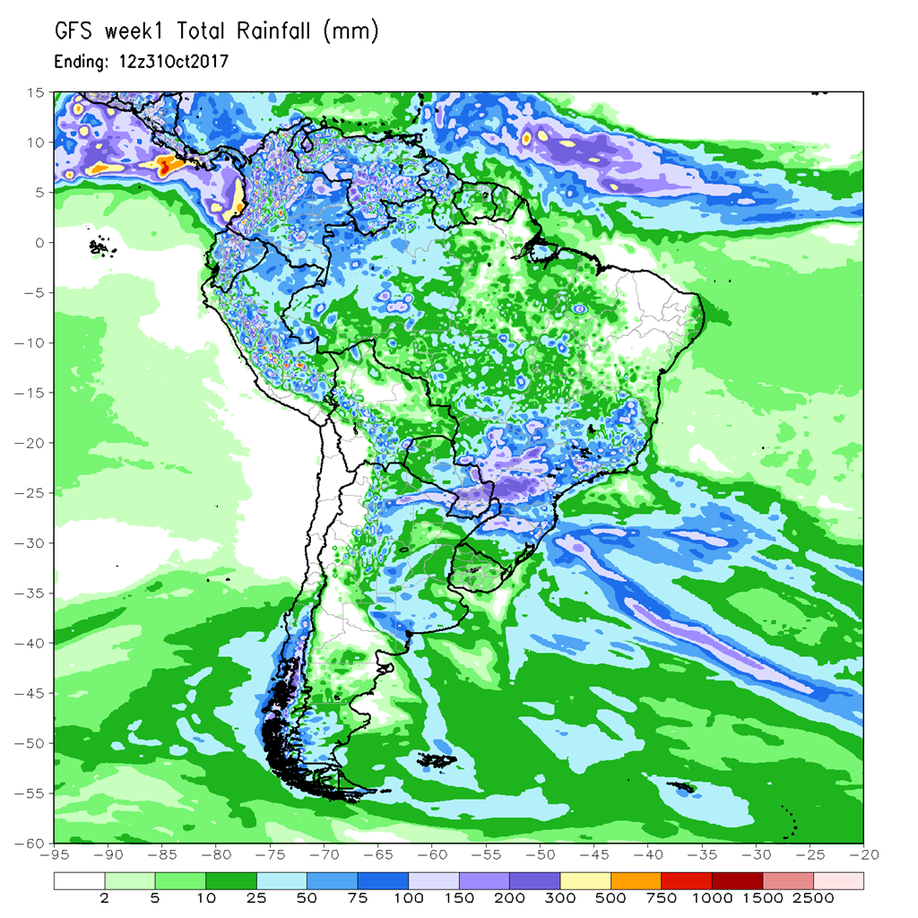 Au Brésil, des précipitations dans le centre et le nord du pays, là où les conditions ont été les plus sèches dans les dernières semaines, sont attendues à partir du milieu de la semaine. Pour la semaine prochaine, des conditions plus conformes aux tendances saisonnières sont également prévues. Ceci laisse entrevoir un « retour à la normale » pour poursuivre et compléter les ensemencements qui ont été jusqu’ici retardés par les conditions trop sèches. Par contre, plus au sud du Brésil, les conditions humides devraient persister encore alors qu’elles l’ont déjà été trop dans les dernières semaines.