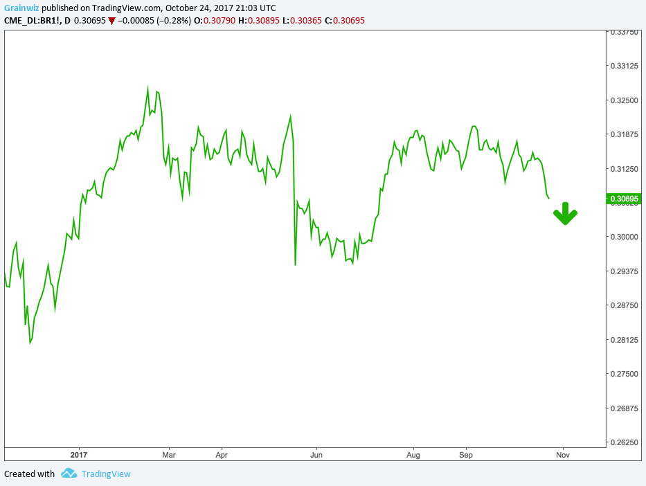 Ajoutant une touche de lourdeur dans le marché du soya, le Réal Brésilien a atteint un nouveau creux aujourd’hui. Ceci laisse présager une recrudescence de compétition sur les marchés mondiaux alors que les producteurs brésiliens s’activeront davantage dans leurs ventes pour écouler leur dernière récolte record.