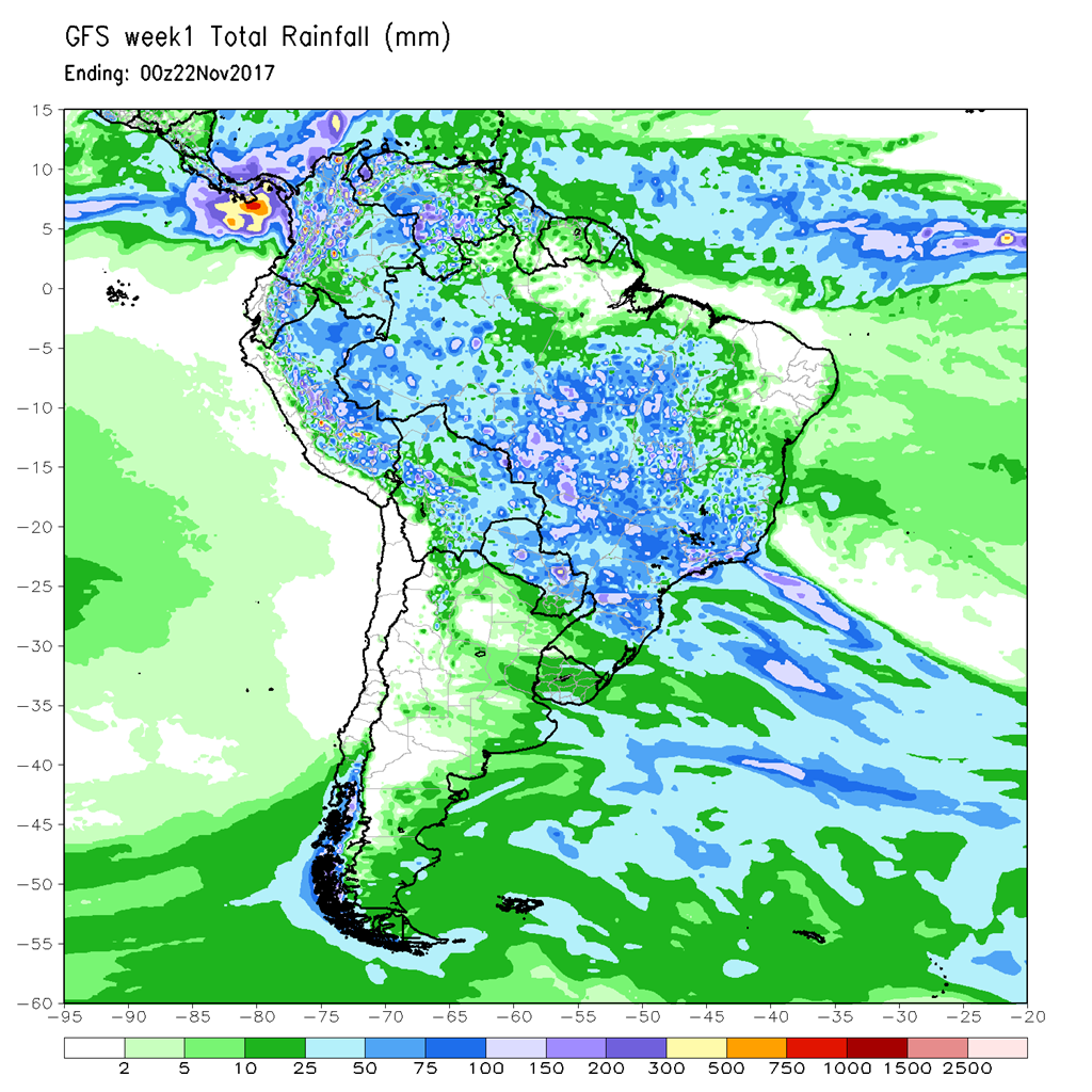 Ce qui a retenu l’attention des marchés dans les derniers jours est cependant les conditions météo qui continuent de prendre du mieux dans les principales régions de production du Brésil. Plusieurs rondes de précipitations sont attendues d’ici la fin novembre, assurant maintenant un bon début de saison pour les cultures en cours.