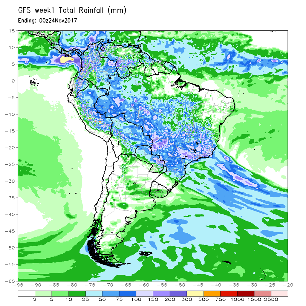 Du côté de l’Amérique du Sud, on rapporte toujours des conditions pour ainsi bien-dire « parfaites » présentement pour le début de saison. Des averses régulières sont toujours attendues dans les principales régions de production, assurant maintenant un bon début de saison pour les cultures en cours.