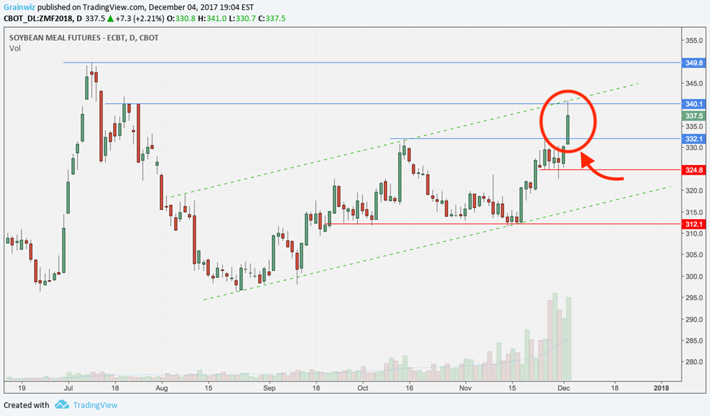 En Amérique du Sud, la dernière semaine aura vu des précipitations très attendues tempérées les conditions très sèches qui sévissent en Argentine. On estime présentement que les ensemencements sont complétés à 50%. Par contre, en dehors de quelques averses dispersées, les prévisions actuelles proposent un retour à des conditions de nouveau très sèches pour les 15 en 30 prochains jours. Résultat, l’Argentine étant le 1er exportateur de tourteau, le prix de ce dernier a bondi ce lundi dépassant brièvement la barre du 340 $US/TC, un sommet inégalé depuis la fin juillet dernier.