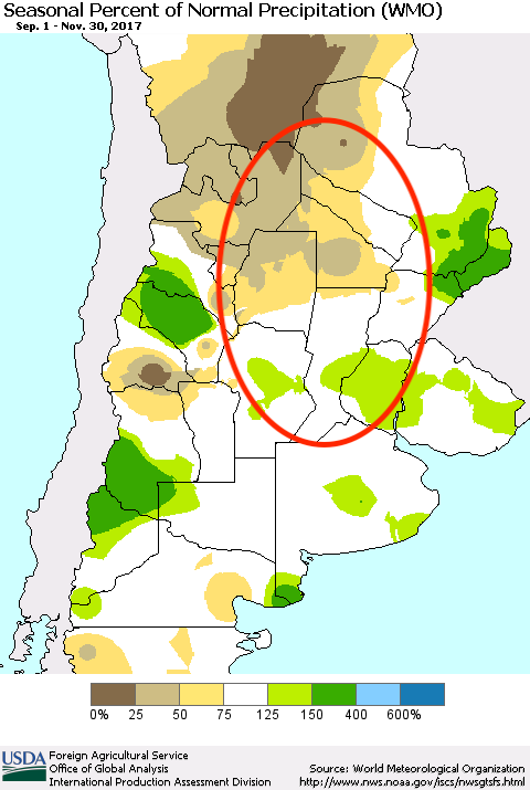 Du côté de l’Amérique du Sud, les conditions météo continuent d’être source de préoccupation. Les prévisions actuelles proposent quelques possibilités de précipitations sur un horizon 15 jours en Argentine. Par contre, c’est peu et au net, les conditions continuent de s’assécher.