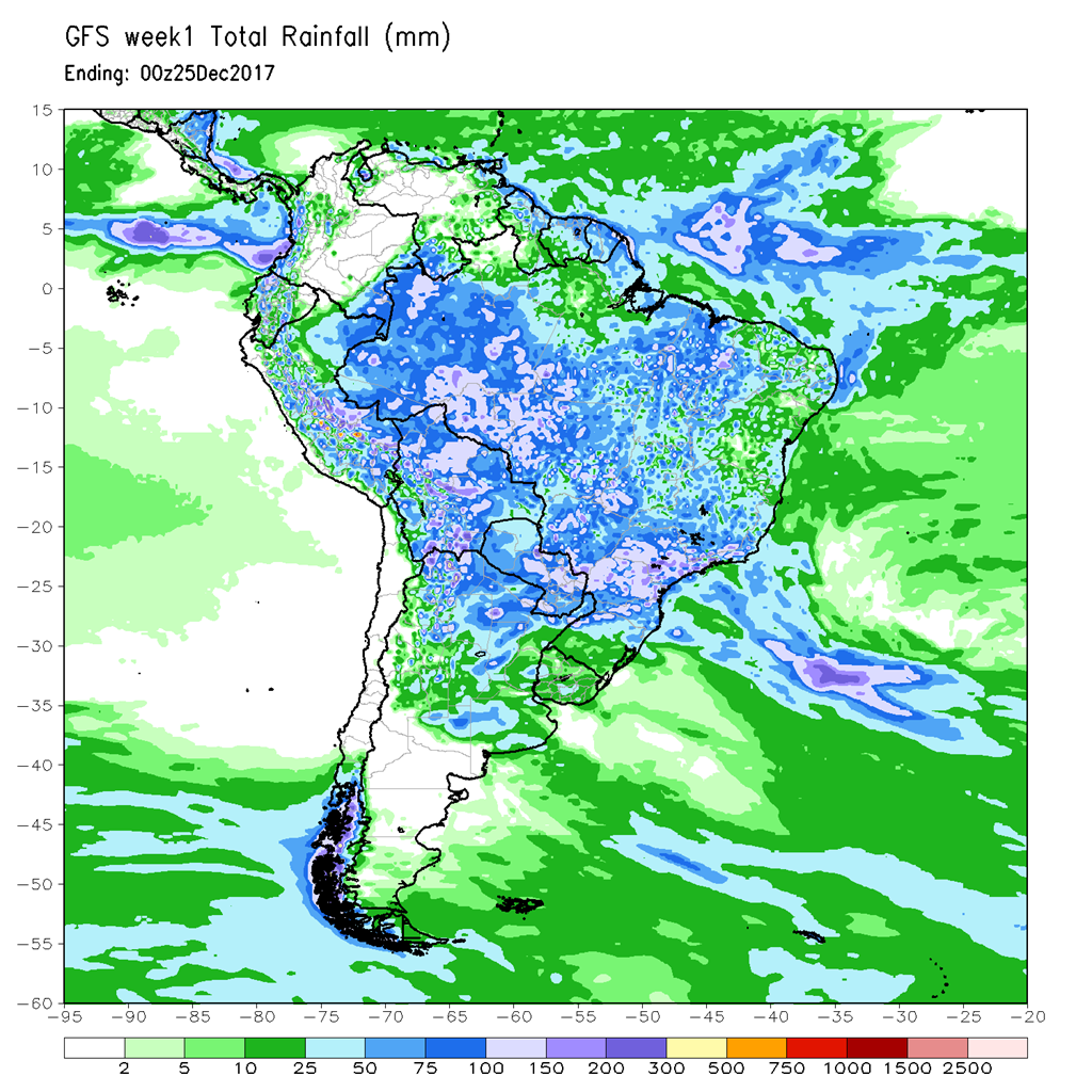 Actuellement, les prévisions météo 8 à 14 jours proposent encore de bonnes précipitations régulières dans la plupart des régions de production de l’Argentine.