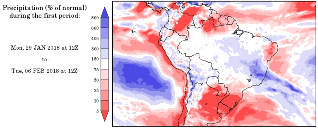 La dernière fin de semaine aura vu certaines régions plus au sud et à l’ouest de l’Argentine profiter de précipitations un peu plus importantes que prévu. Par contre, toute l’attention des marchés se tourne vers les perspectives pour les 2 prochaines semaines qui laissent peu de place à interprétation : ce sera chaud, mais surtout encore très sec pour les cultures en cours.