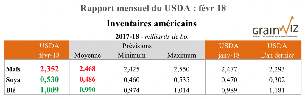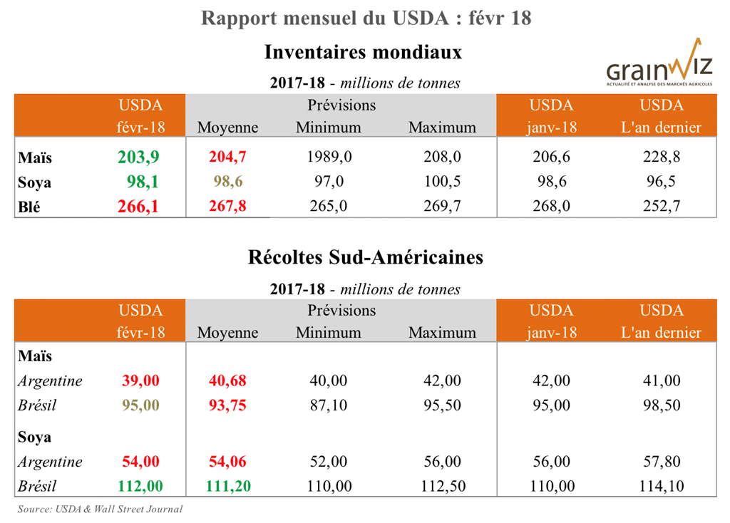 Le USDA a présenté ce midi son rapport mensuel d'offre et demande (WASDE) pour le mois de février.