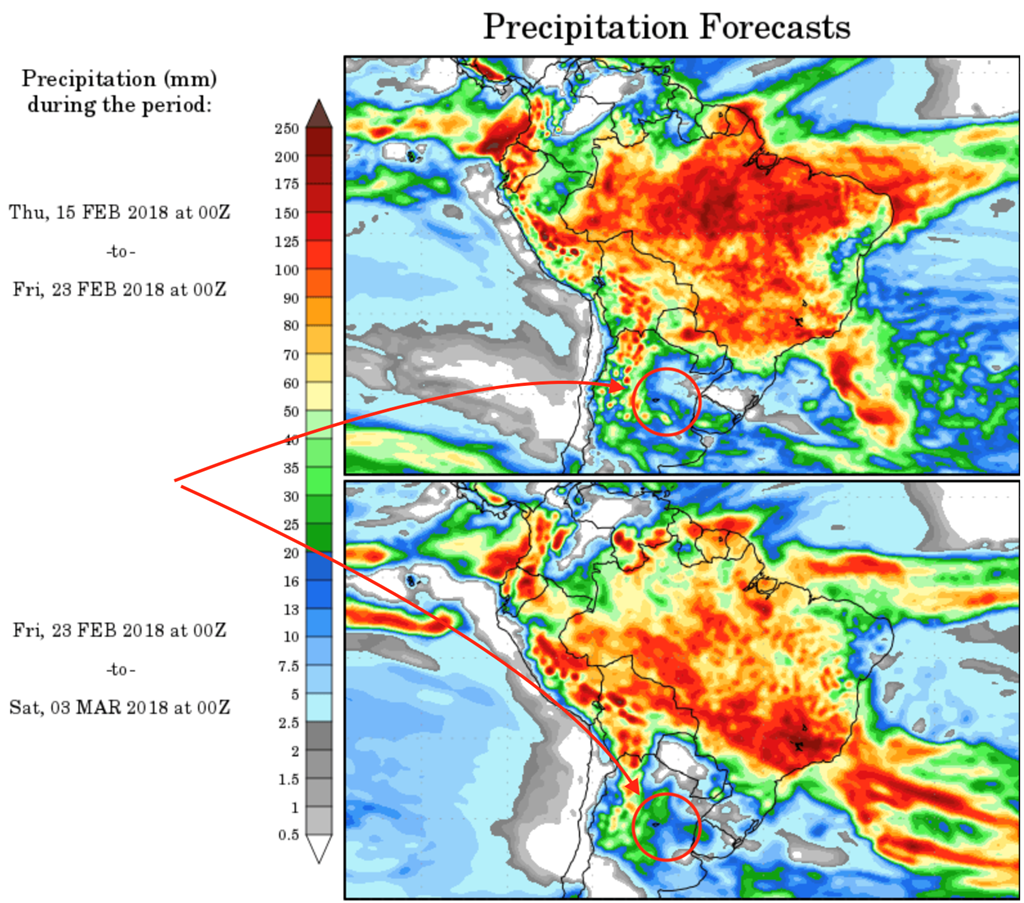Une tournée en Amérique du Sud réduit la prévision de récolte de maïs argentin de 1,0 million de tonnes à 38,0 millions de tonnes et de 2,0 millions de tonnes à 86,0 millions de tonnes celle au Brésil. Rappelons que le USDA a récemment fixé la production de maïs brésilien à 95,0 millions de tonnes.