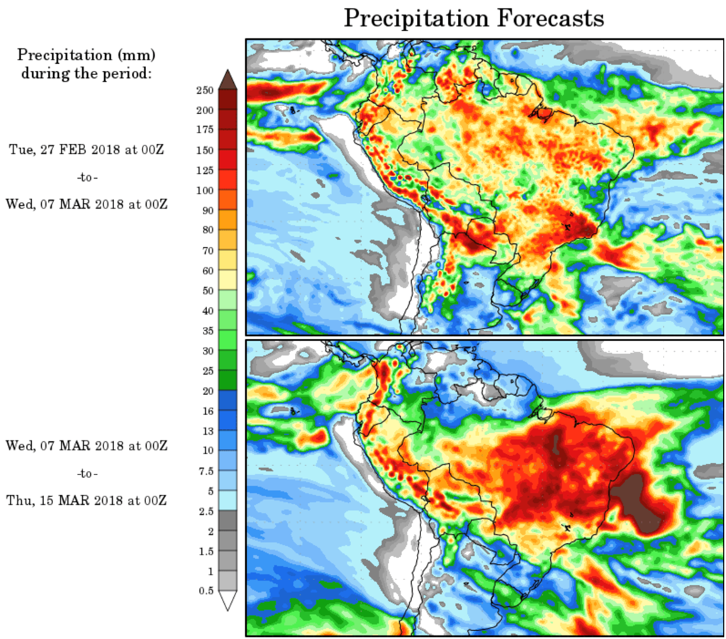 Au Brésil, les conditions demeurent trop humides dans plusieurs régions, ce qui retarde toujours les récoltes de soya et les ensemencements de la seconde récolte de maïs (safrinha). La période " normale " d'ensemencement pour Safrinha est maintenant derrière nous, et plusieurs analystes anticipent que moins de maïs sera finalement semé.