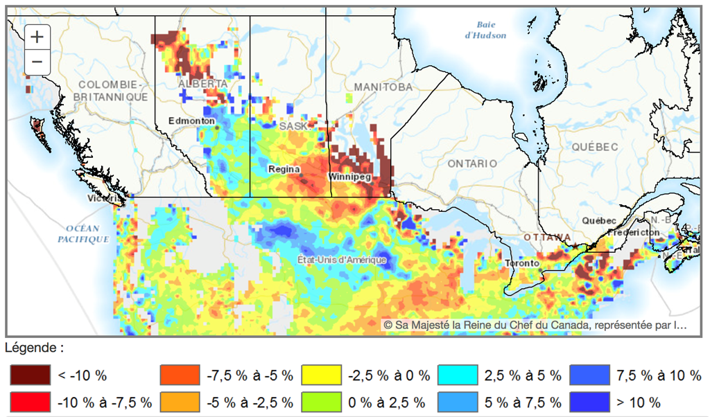 Différence de l'humidité du sol par rapport à la moyenne - Source: Statistique Canada