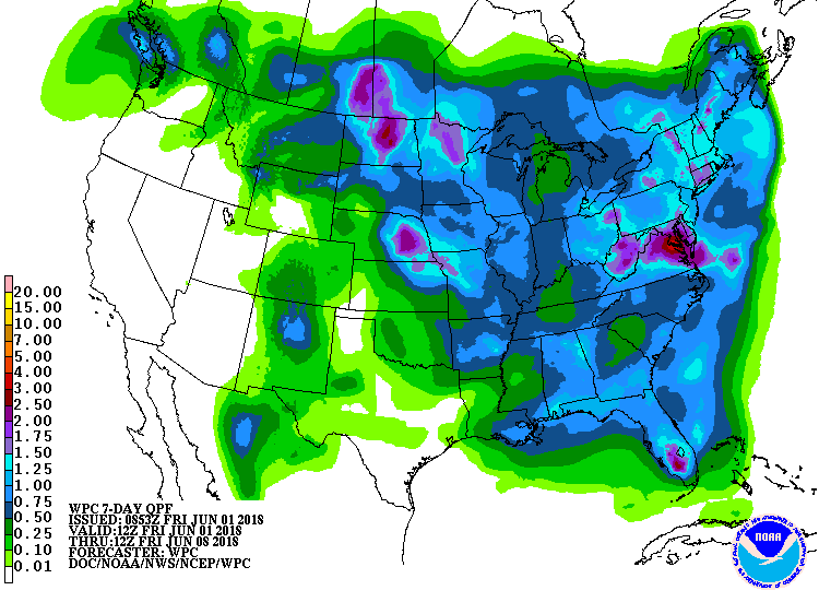 Heureusement, la météo demeure au centre de l’attention des marchés avec, pour débuter le mois de juin, de nouvelles prévisions de conditions sèches, mais surtout très chaudes pour les prochaines semaines. Ceci aura sans aucun doute contribué à freiner le recul des derniers jours.