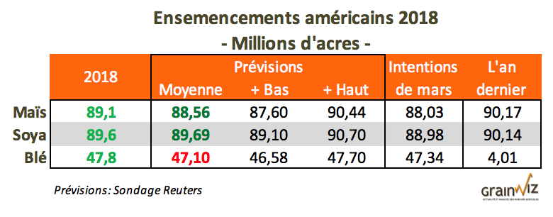 Dans l'ensemble, les résultats présentés sont négatifs avec des ensemencements plus importants que ce qui était indiqué par les producteurs américains en mars dernier.