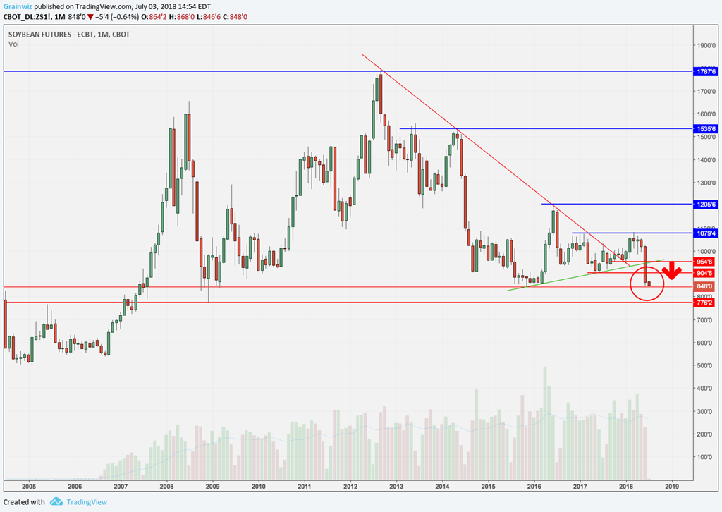 À Chicago, le marché du soya fleurte maintenant avec un support important autour de ses creux atteints à la fin 2015/début 2016 autour de 8,44 $US/boisseau. Un passage sous ce niveau laisserait peu de supports avant une revisite du seuil clé de 8,00 $US/bo..