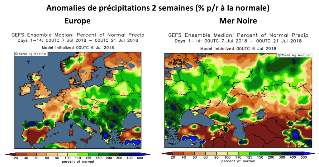 En Europe et dans a région de la Mer Noire, les marchés ont à l’œil les conditions anormalement sèches, spécialement en Russie où de semaine en semaine, une mauvaise récolte de blé se confirme.