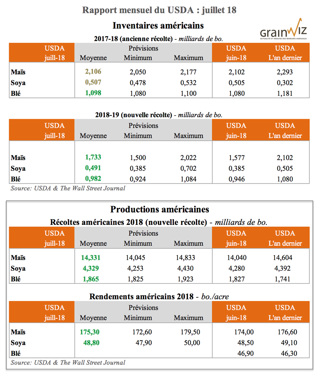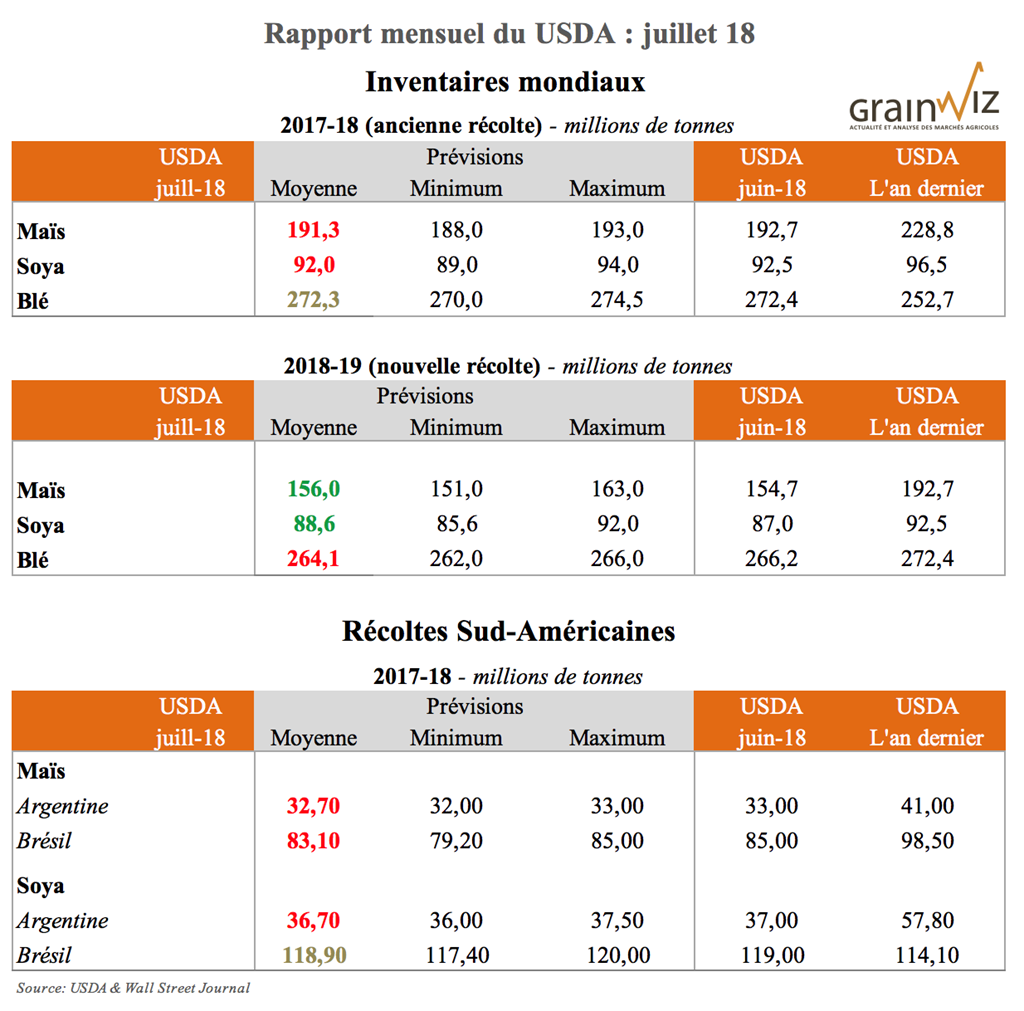 Pour accéder au rapport lors de sa publication (en anglais) : WASDE Juillet 18