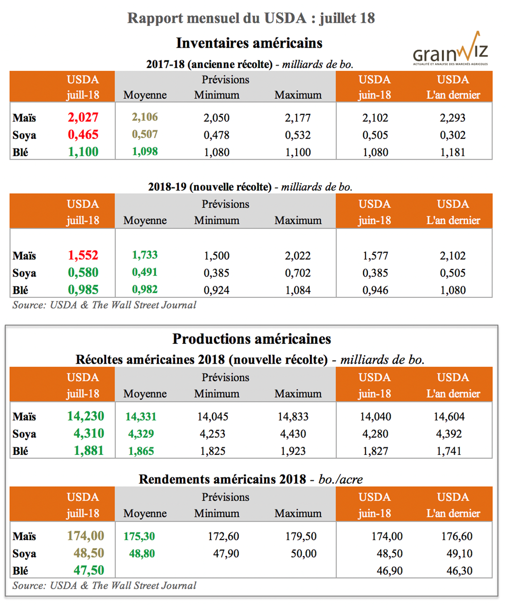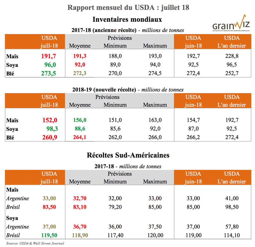 Pour accéder au rapport complet du USDA (en anglais) - WASDE Juillet 18