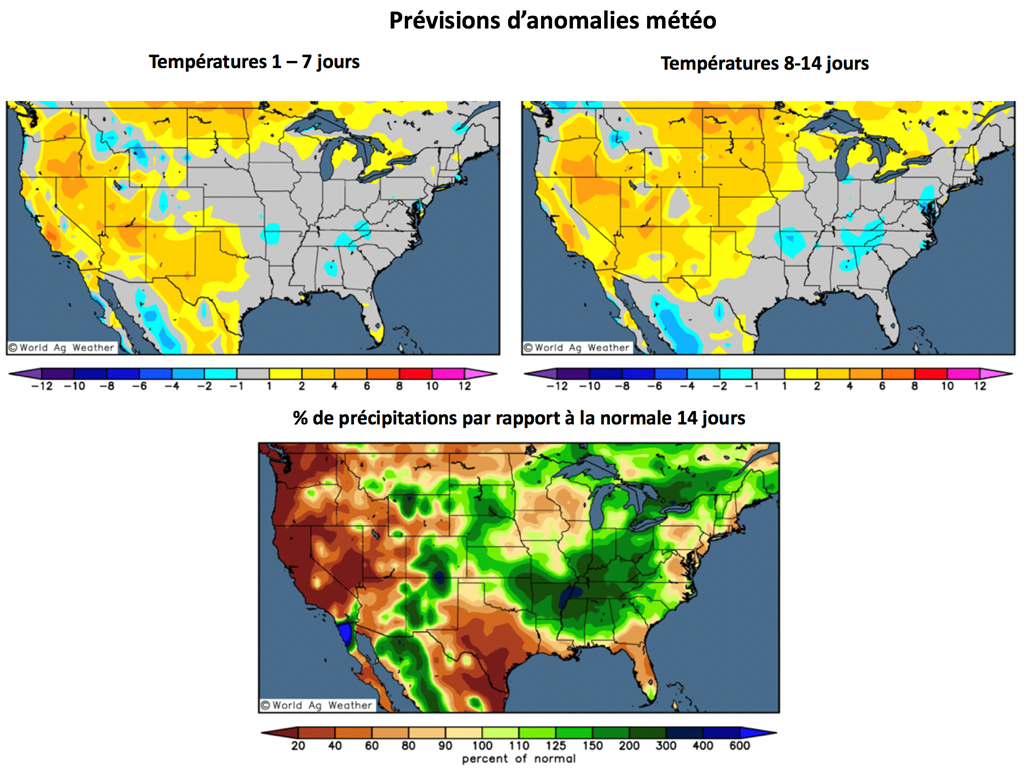 Pour le rapport sur les ventes à l’exportation en date du 9 août dernier, qui sera présenté demain, le marché anticipe un résultat entre 300 000 et 600 000 tonnes pour l’ancienne récolte et entre 0,3 et 1 million de tonnes pour la nouvelle.